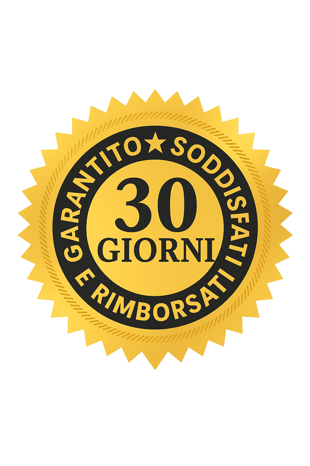 La tua soddisfazione è la nostra priorità. Se per qualsiasi motivo non sei pienamente soddisfatto del tuo acquisto, puoi richiedere il rimborso completo entro 30 giorni dalla data di consegna. Nessuna domanda scomoda, nessuna complicazione: vogliamo che tu ti senta sicuro e sereno ogni volta che scegli i nostri prodotti.
